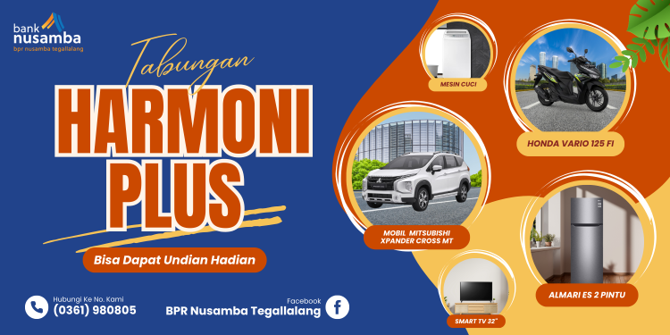 Tabungan Harmoni Plus merupakan tabungan berhadiah yang diundi setiap tahun di bulan Februari dengan Hadiah Utama "Mobil Mitsubishi Xpander Cross MT Putih".