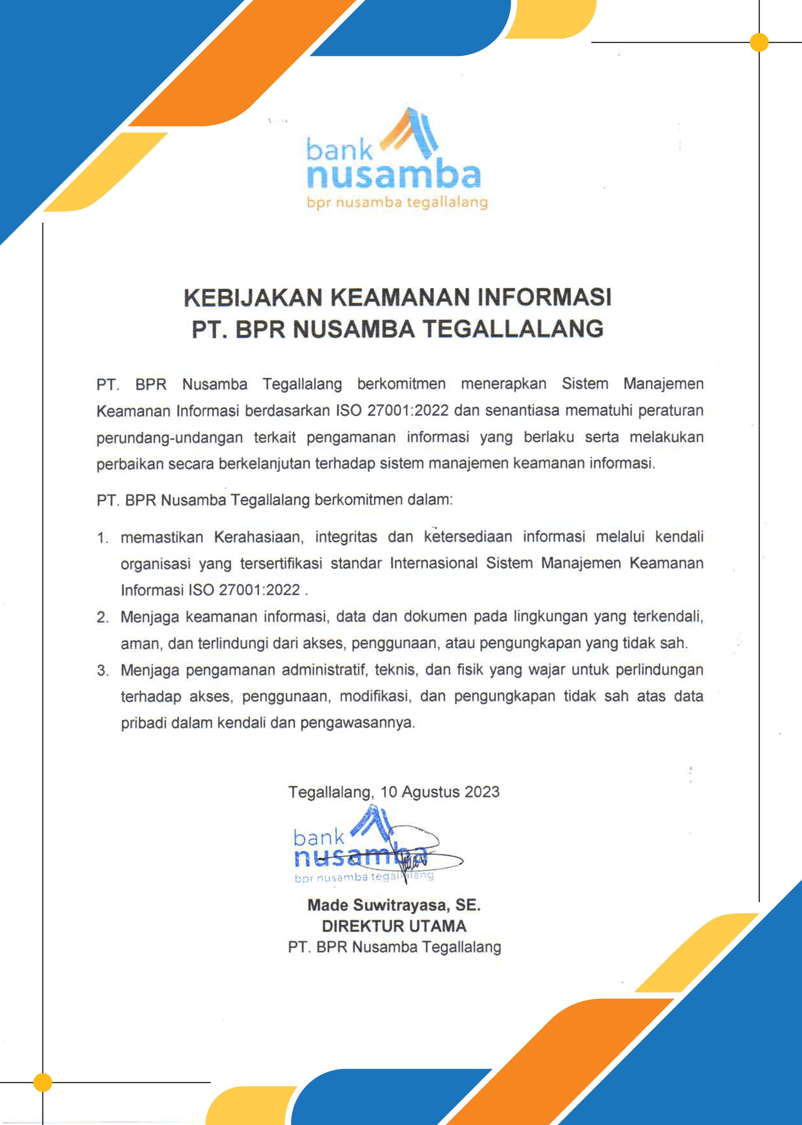 KEBIJAKAN KEAMANAN INFORMASI